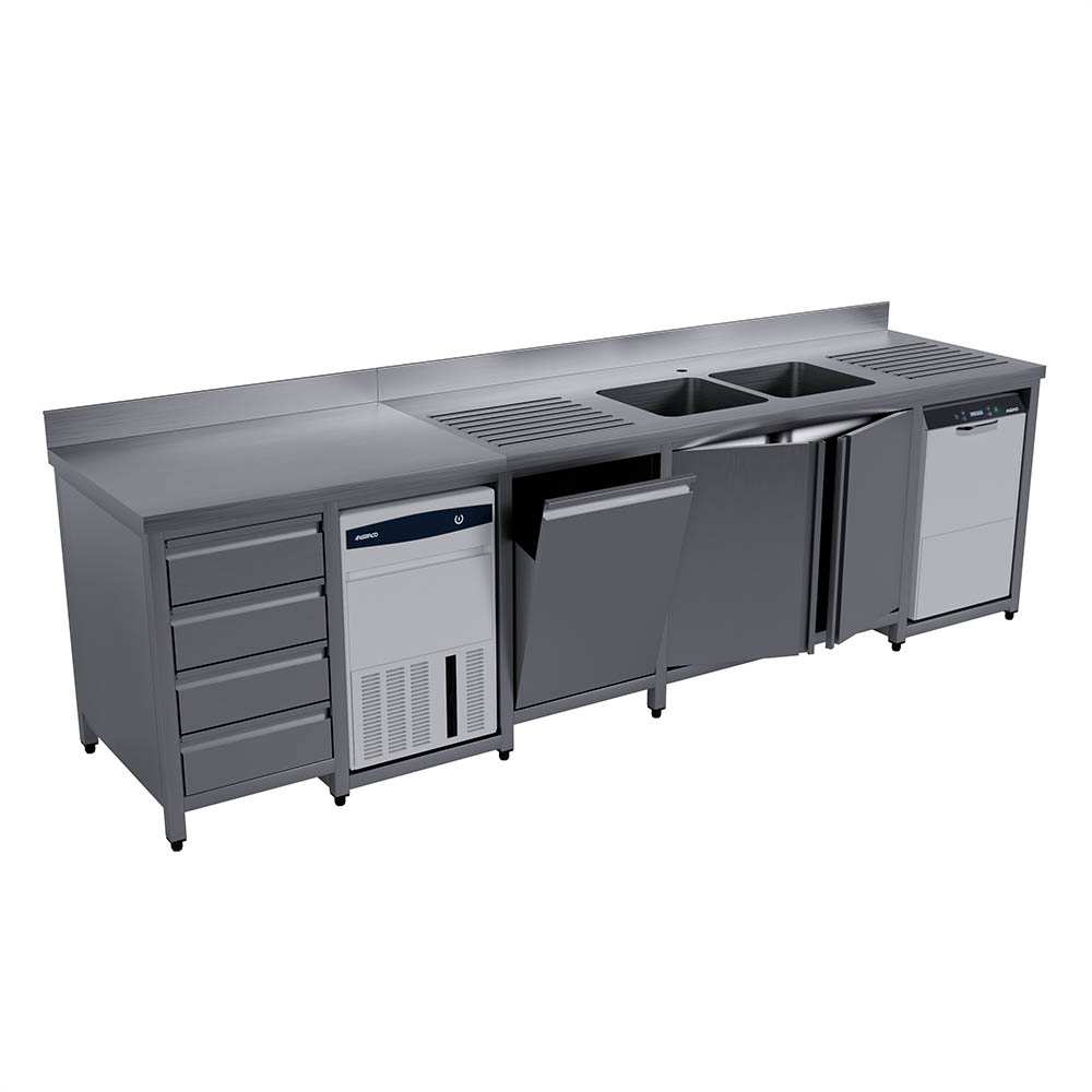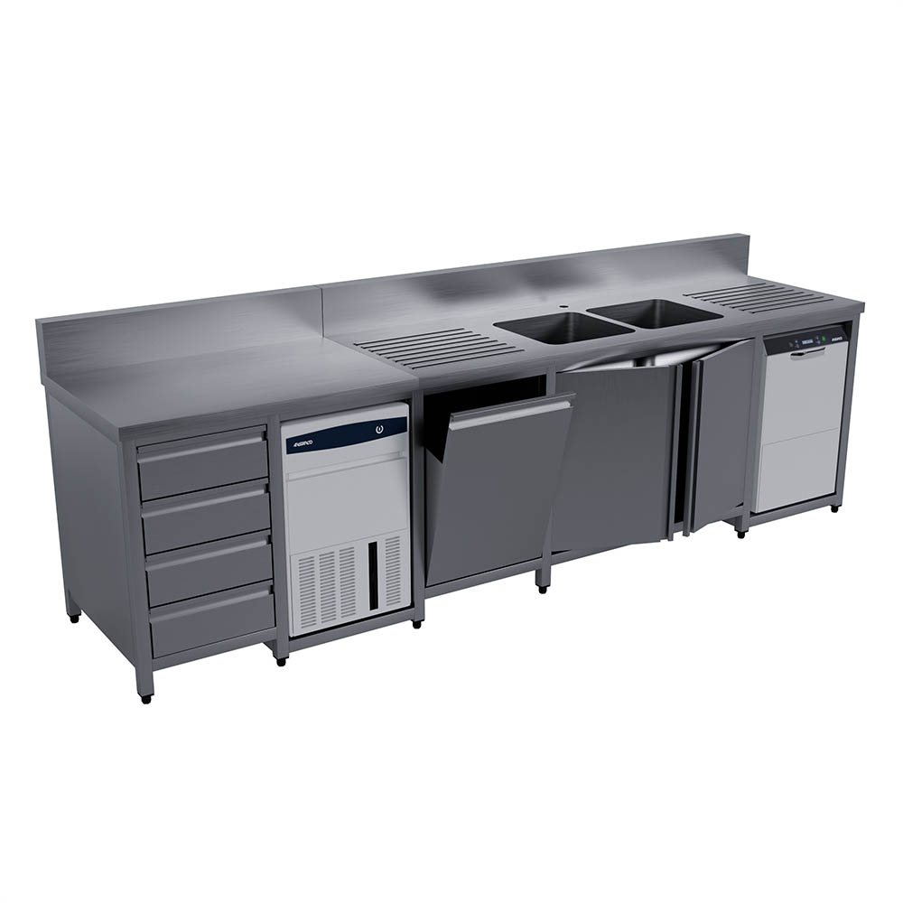 Svi šankovi koje isporučujemo kod kupca u cijelosti su rađeni od inoksa AISI 304 1.4301 minimalne debljine lima 1 mm i konstrukcije od cijevi 40 x 40 mm sa nivelirajućim nogama. Šankovi se rade s pripremom za montažu maske i ploče, a u dogovoru sa investitorom možemo isporučiti i montirati masku prilagođenu izgledu interijera.